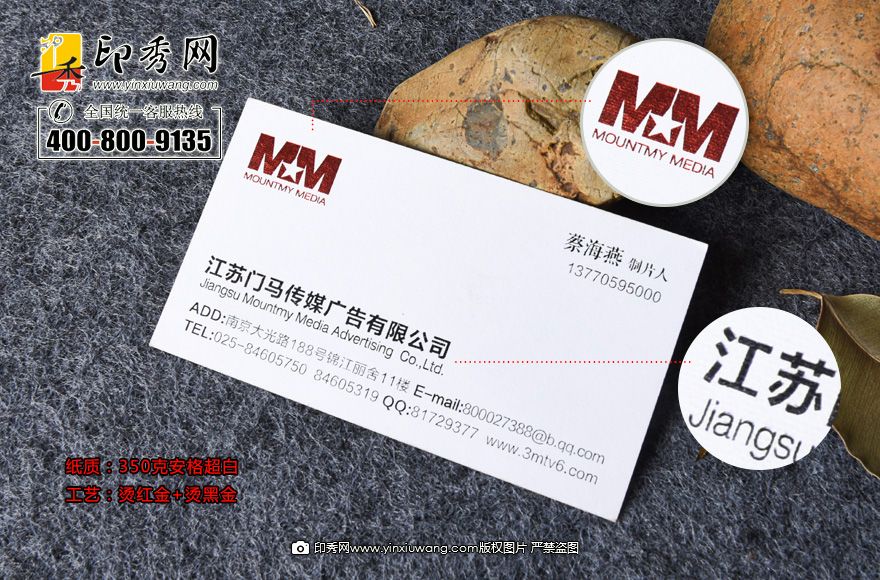 說明:一款廣告?zhèn)髅焦镜拿啙嵈蠓?。?yīng)用安格超白這款很細(xì)膩的紋理讓名片品質(zhì)提升不少。紅金黑金是色彩中經(jīng)典搭配,金色耀眼能把形象體現(xiàn)。